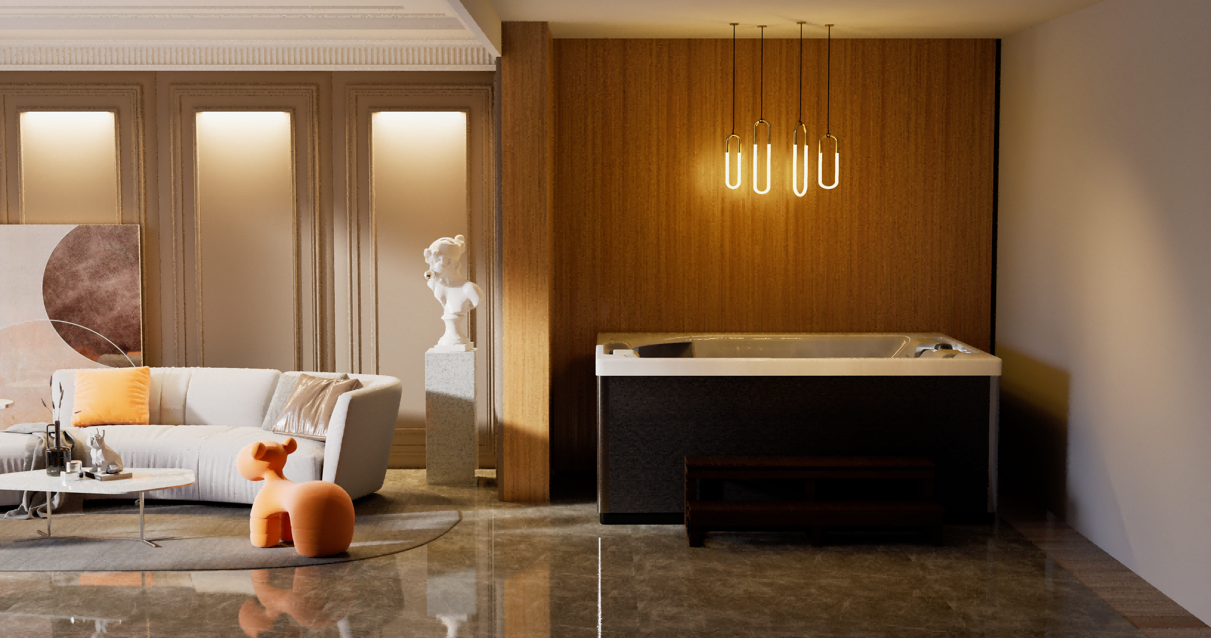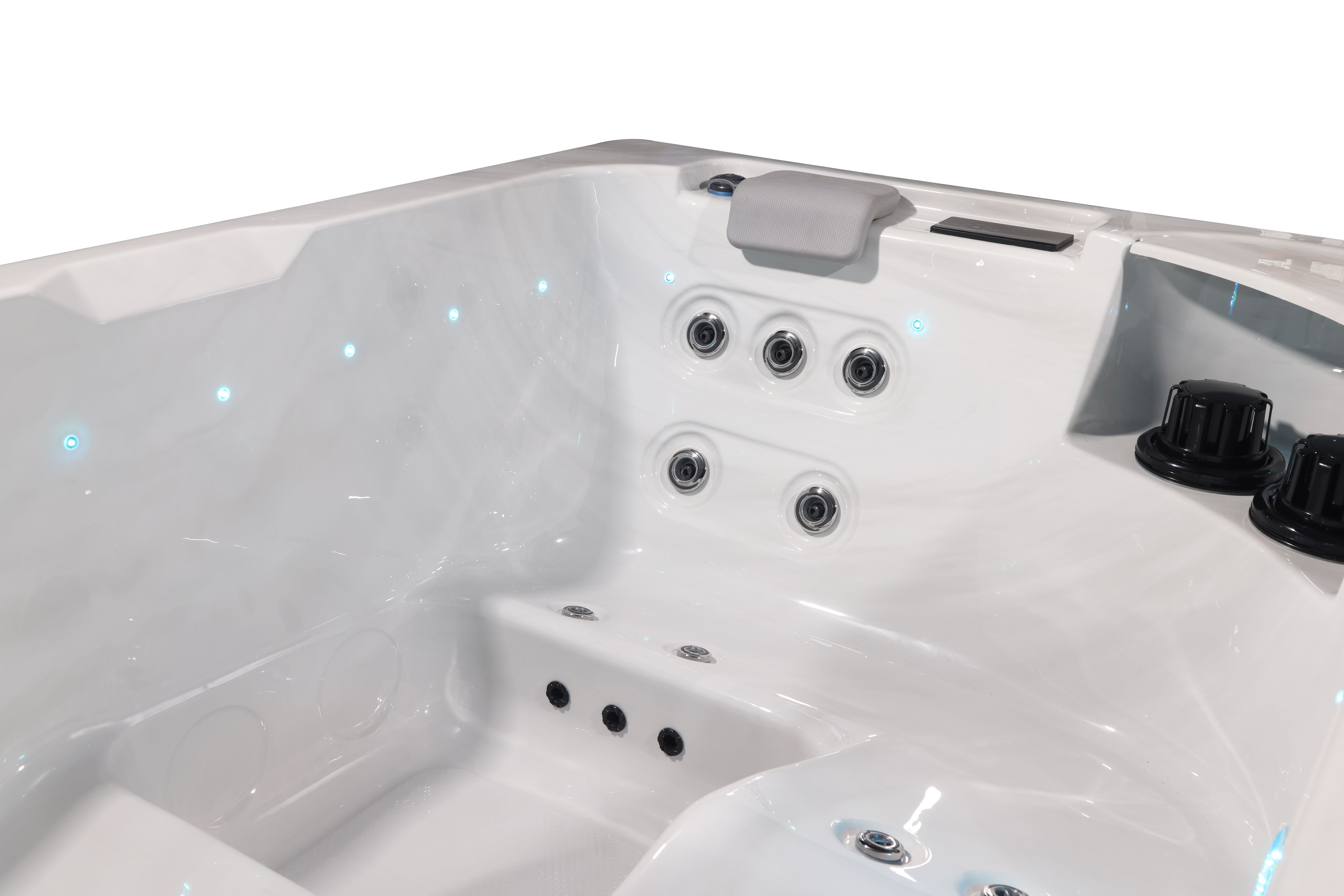 Хорошо продуманная система освещения превращает вечерний отдых в эстетическое наслаждение. Многоцветная подводная подсветка Northern Lights, дополненная изящной подсветкой ватерлинии, создает сложную игру света на воде, способствующую глубокой релаксации и визуальной гармонии.