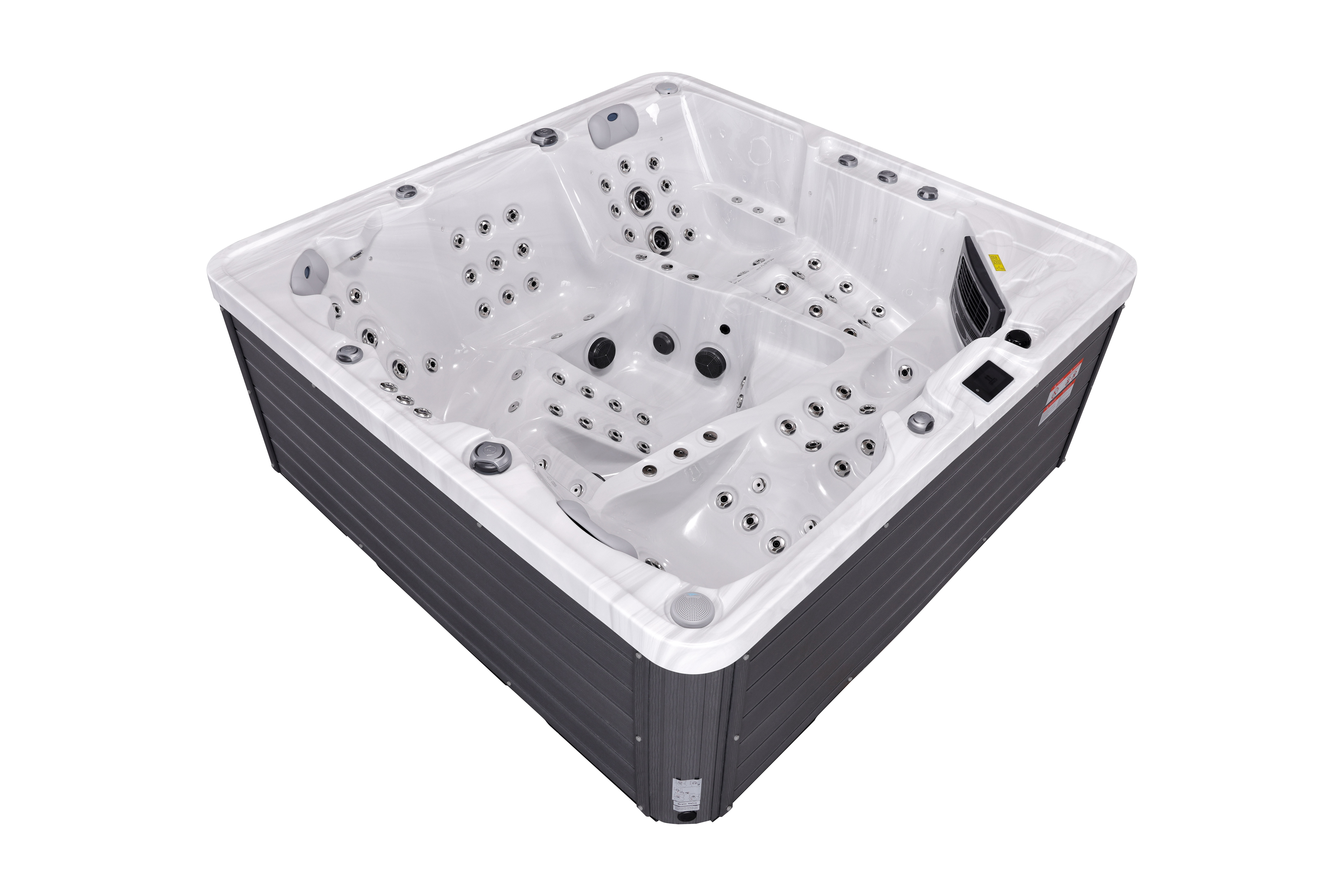 NordicSpa Tyur с размером чаши 2,25 x 2,25 м идеально подходит для установки как в помещении, так и на улице. Просторная квадратная чаша с тремя эргономичными подголовниками комфортно вмещает до пяти человек, создавая королевские условия для полноценного отдыха и общения.